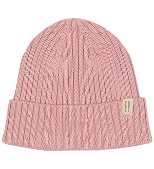 Flot Petit Piao hue i en dyb brun farve med ribstruktur, der giver en stilren effekt. Huen har et simpelt label med initialerne "PP" i en lys nuance, diskret placeret på kanten. Petit Piao hue kombinerer enkelhed og funktionalitet i sin design.