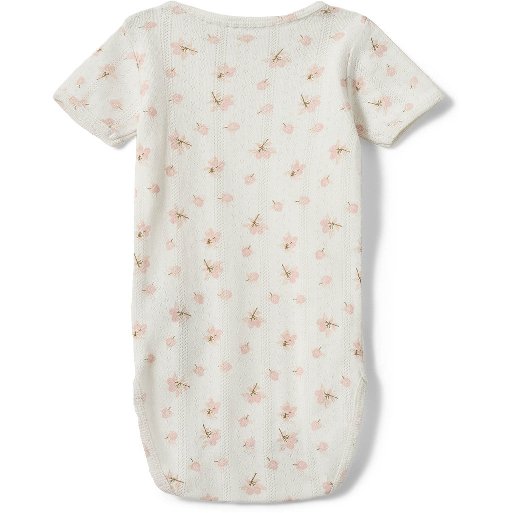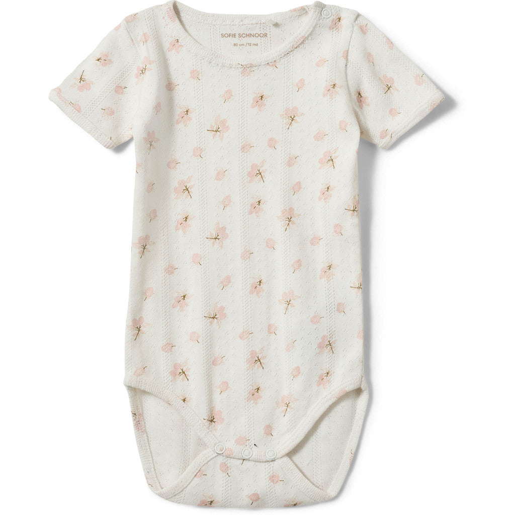 Bodystocking in printed cotton Pointelle. with short sleeve.