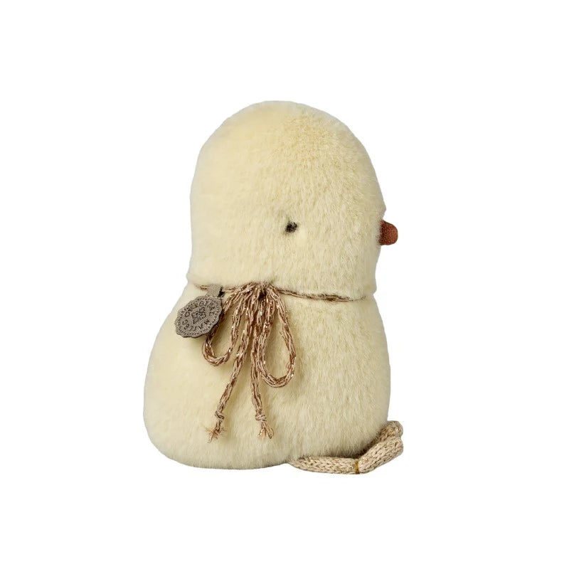 En lille legetøjs kylling der passer perfekt til en lille hånd. Den lille kylling har det sødeste udtryk og kommer i et meget blødt plys stof.