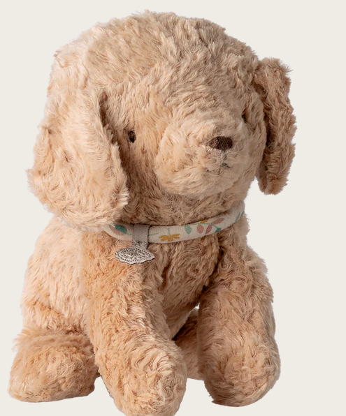 Hvis drømmen om en hund er langt væk, kan den gå i opfyldelse nu med denne søde hundehvalp. Den er lavet i eksklusive materialer, som giver hunden et smukt vintagelook og et blødt touch. Glem ikke at tilføje tilbehør til din nye bedste ven.