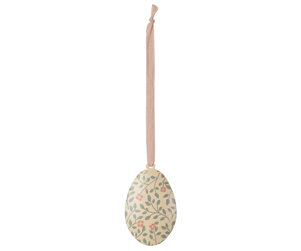 Metal påskeæg ornamenter med blomsterprint. De er smukke på en gren som dekoration på påskebordet. Mix de forskellige farver med andre Maileg påskeornamenter for at fuldende din dekoration.