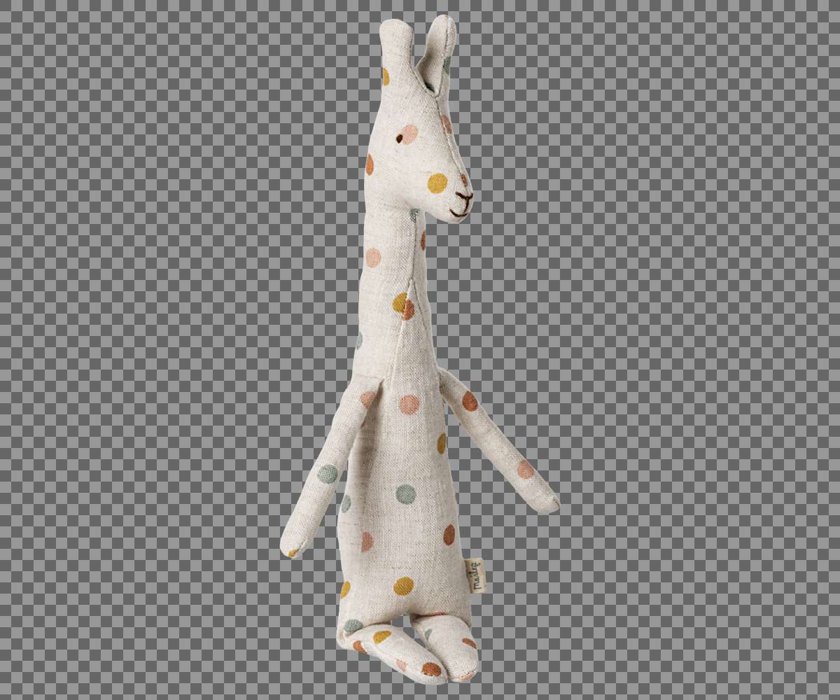 Den lille giraf har en perfekt størrelse for små hænder. Den er lavet i en klassisk, prikket metervare fra Maileg og er en sød tilføjelse til Safari friends kollektionen.