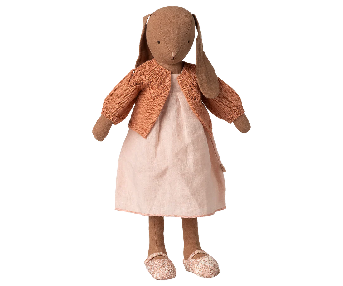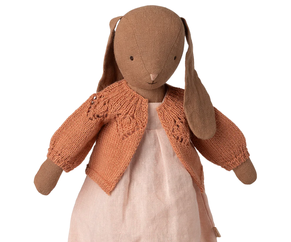En strikket cardigan til kølige dage er nødvendigt. Denne bløde udgave er specielt lavet til vores harer og kaniner i størrelse 3.