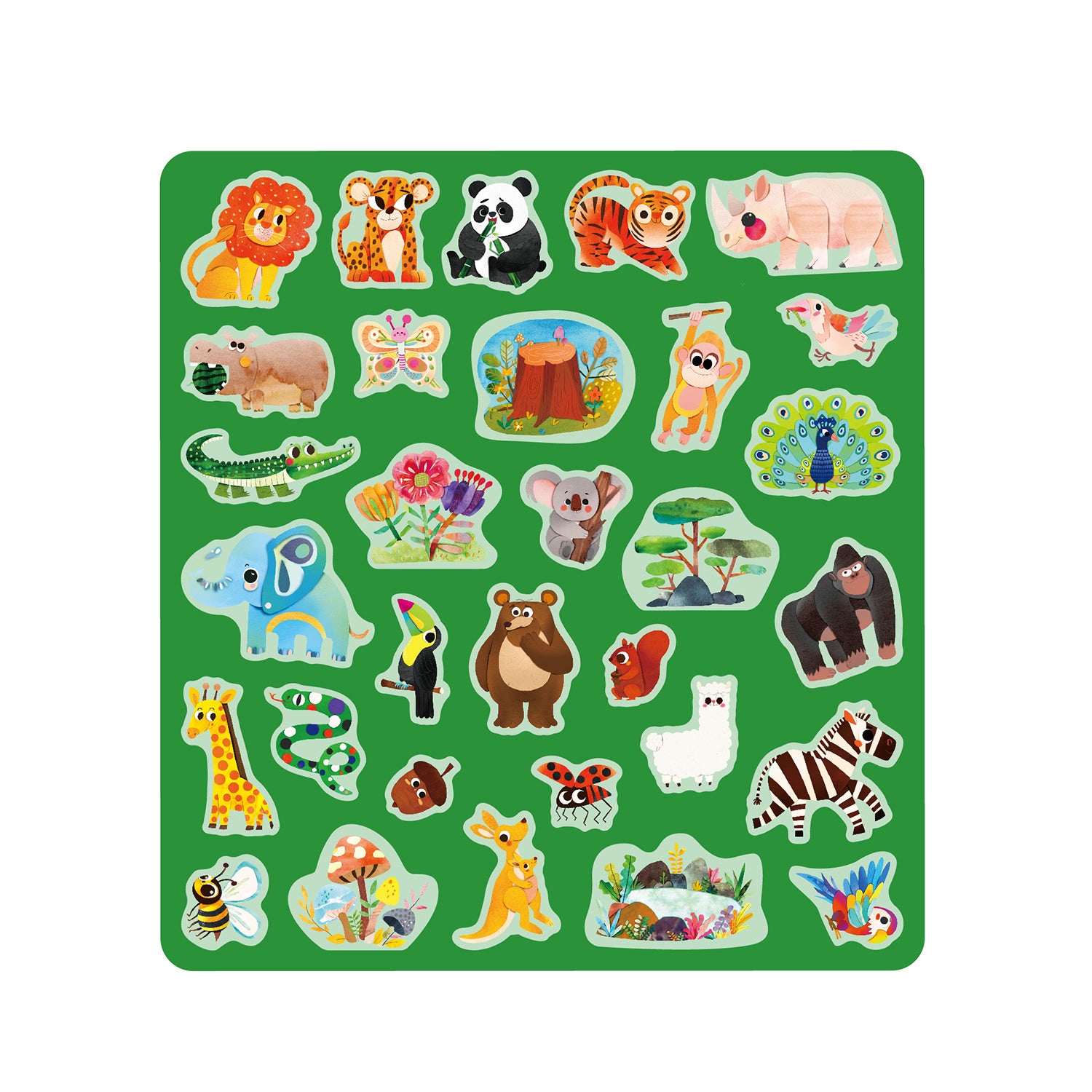 31 illustrerede og sjove skumklistermærker med dyretema, inklusive en udfoldelig baggrund til at selv at dekorere med farverige scener ved hjælp af sin fantasi.